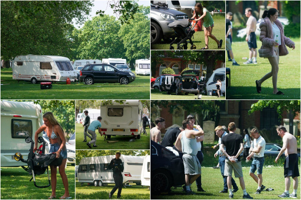 Путешественники, которые разбили лагерь в богатом парке Западного Лондона в выходные дни банковских каникул, отказались переезжать, несмотря на то, что местный совет принял против них законные меры. Группа ирландских цыган продолжает оставаться на живописном Кью-Грин в Ричмонде после прибытия в четверг вечером с примерно 12 домами на колесах и другими транспортными средствами. Но, несмотря на то, что их попросили переехать в пятницу, группа не выказывала никаких признаков отъезда, они гуляют по участку и собираются группами на солнце с температурой, поднимающейся до 77F (25C).