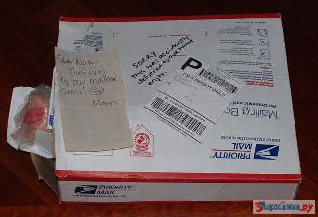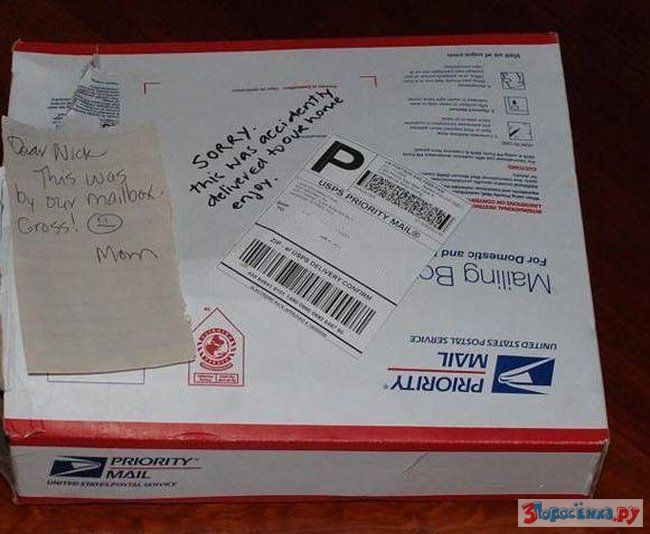 15-тилетний подросток заказал себе некоторый товар с почтовой доставкой. Но все вышло не так, как он замышлял. По ошибке, посылку доставили соседям, которые с удовольствием посмотрели содержимое, после чего передали ее его маме с запиской: "Извините, это было случайно доставлено к нам домой, наслаждайтесь". Негодованию женщины не было предела, потому что сын реально опозорил ее перед соседями...
