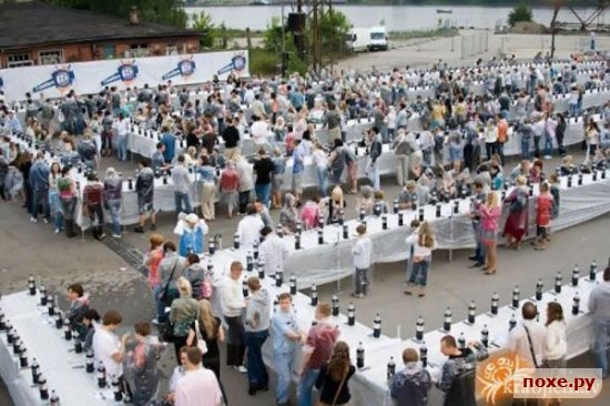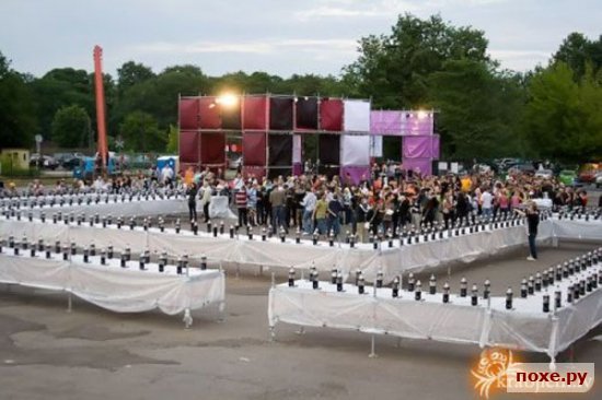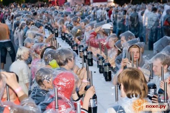 В Латвии. В честь 15-летия бизнес-университета Turiba, студенты решили побить мировой рекорд по Ментос-Коле. Предыдущий принадлежал бельгийцам из города Leuven - 1499 бутылок. Латыши переплюнули - 1911 пузырей Колы забили у них фонтаном. Закончилось все файер-шоу и концертом.