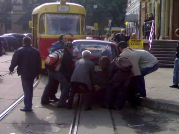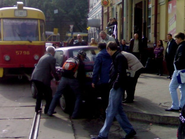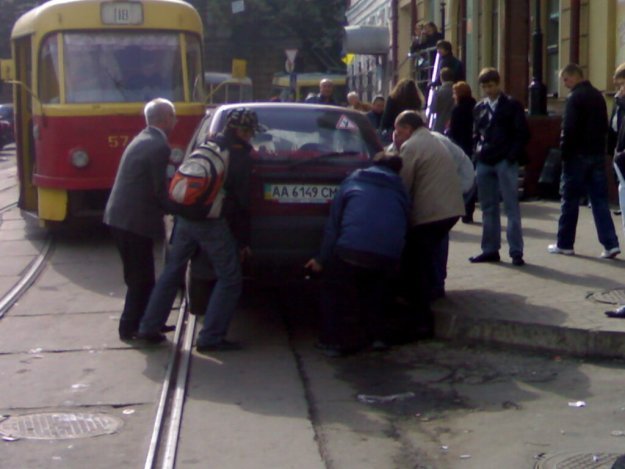 Очевидец событий пишет: Контрактовая площадь. Барышня припарковалась. Правильно! Ведь знака запрета - нет. Итог - несколько сотен людей на 40 минут застряли в этом цирке. Но на работу я ехал в самой веселой маршрутке Киева. Просто мы, отъезжая, видели хозяйку авто. :D