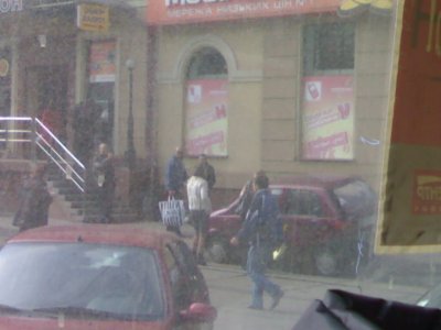Хозяйка со спины в белом, Фотографировал уже в маршрутке. Она долго возмущалась дружной компании кондукторов (тусовка у них там - конечная остановка ведь), которые рассказали предыстория диких скачков вбок фиолетового "Матиза". Что сказать? Гримаса хозяйки такова - тупое недоумение в глазах. Что-то вроде: зловещее "Опаньки!" =)) Пы.Сы. Прикол в том,что машина взята напрокат. Активисты движения - "За безоблачный путь подольских трамваев" звонили в эту контору и просили найти арендаторшу. Реакция - схожа с гримасой хозяйки авто.