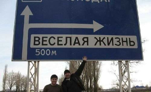 самое прикольное это весёлая жизнь, там сразу после поворота кладбище:)