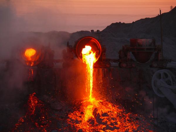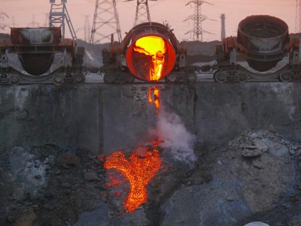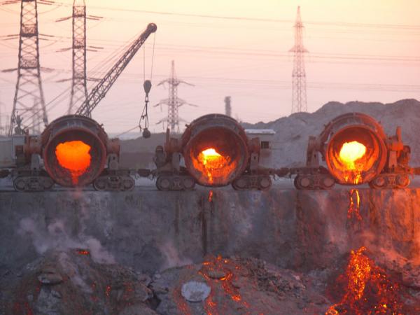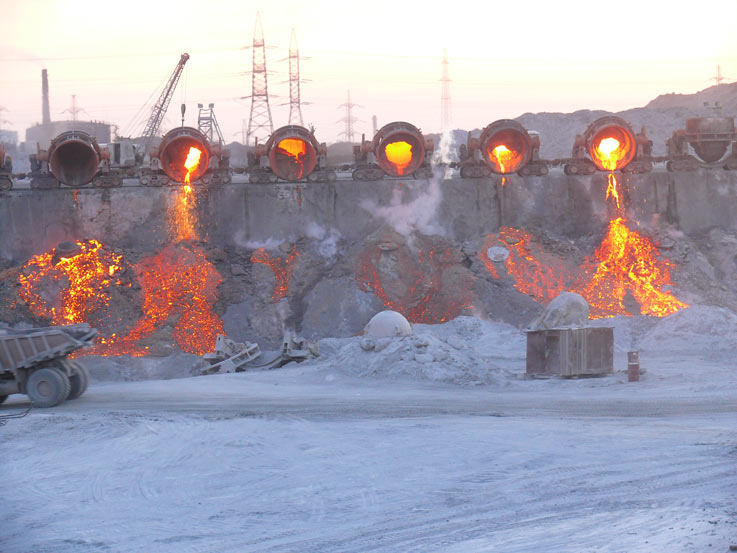Когда льют шлак - это захватывающее, очень красивое зрелище...