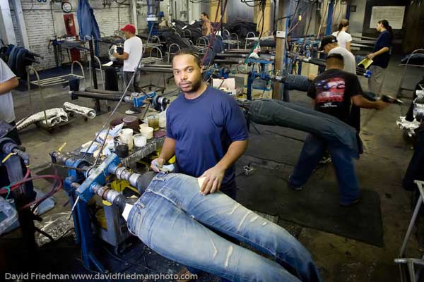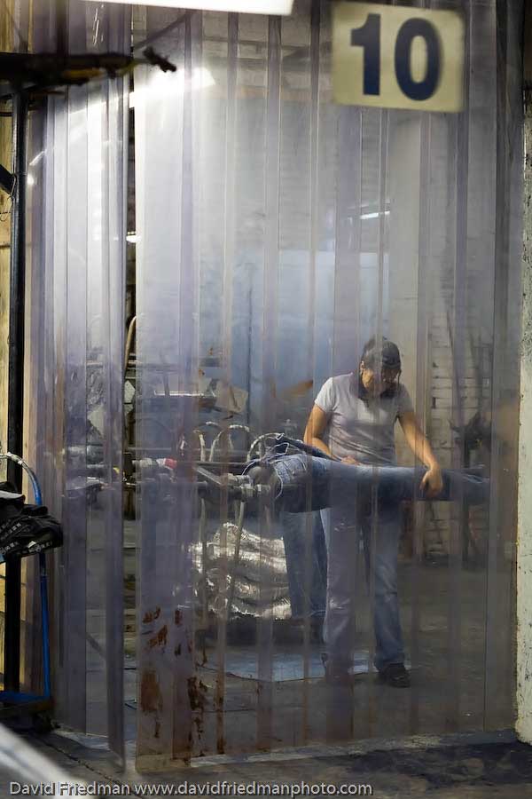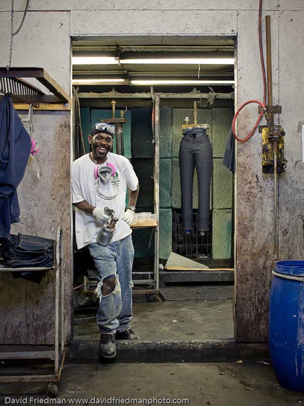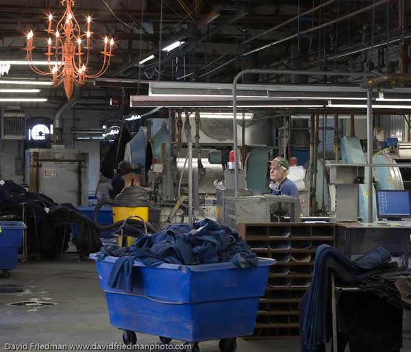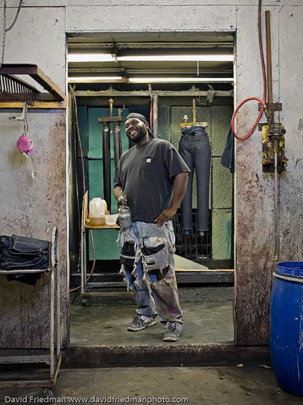 Автор пишет: Эти фото я сделал на текстильной фабрике Denim в Кентуки. Работники этой фабрики работают только для небольшой группы топовых дизайнеров. Я всегда насмехался над джинсами которые покупают уже дырявыми. Только после того как я понаблюдал за процессом создания драных джинсов воочию, я понял эти ребята настоящие мастера, и состаривание это сложный и интересный процесс.