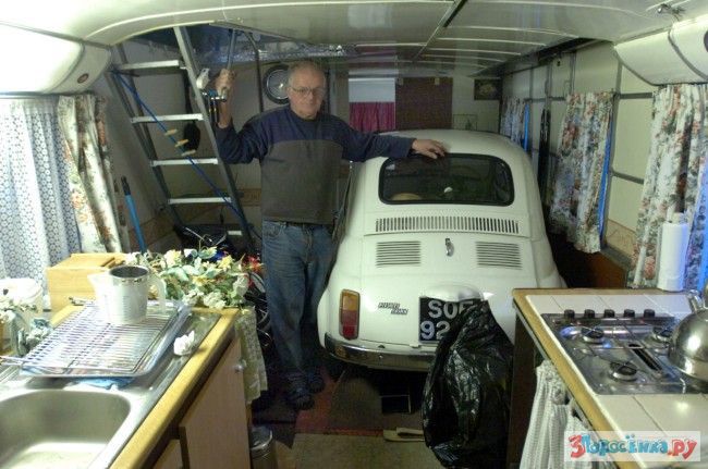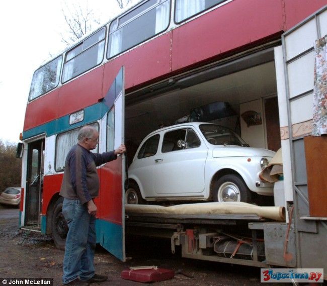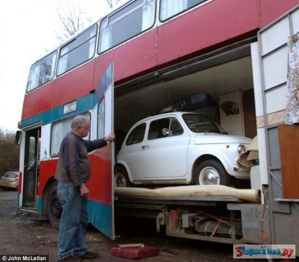 Англичанин двадцать лет работал над своим двухэтажным автобусом 1986ого года выпуска, чтобы сделать из него настоящий дом на колесах.Теперь он возит в нем свой автомобиль)))