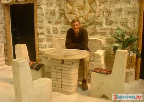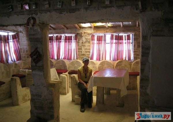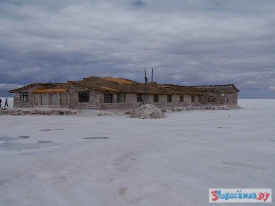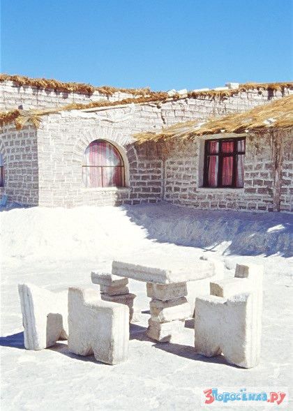 В юго-западной части Боливии, недалеко от известного месторождения соли Uyuni, находится уникальная гостиница Hotel de Sal Playa. Гостиница, целиком и полностью построенная из соли. Еще в 1993 году этот отель построил один предприимчивый соледобытчик, заметив, что люди, желающие наняться на работу, частенько ищут, где бы остановиться переночевать, а соль - чуть ли не единственный в тех местах материал, который и достать легко, и обрабатывать нетрудно.
