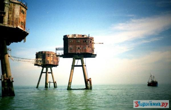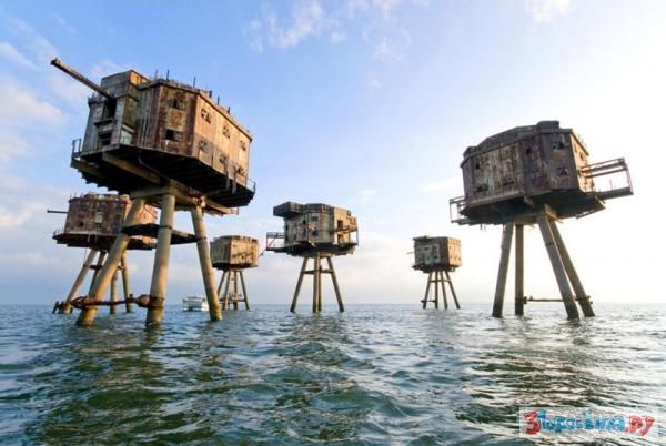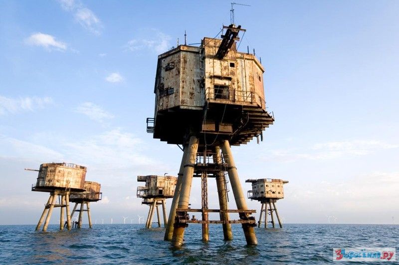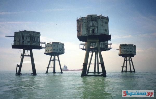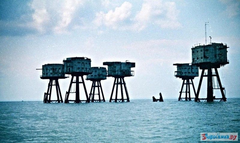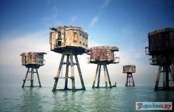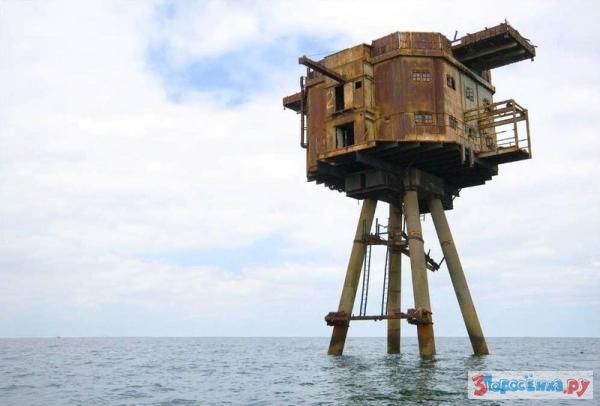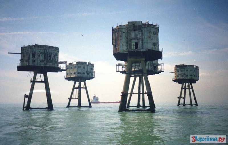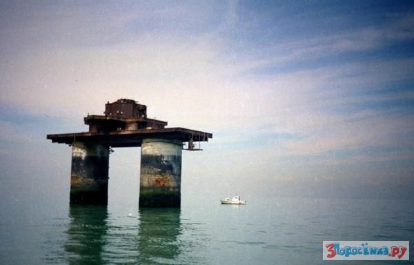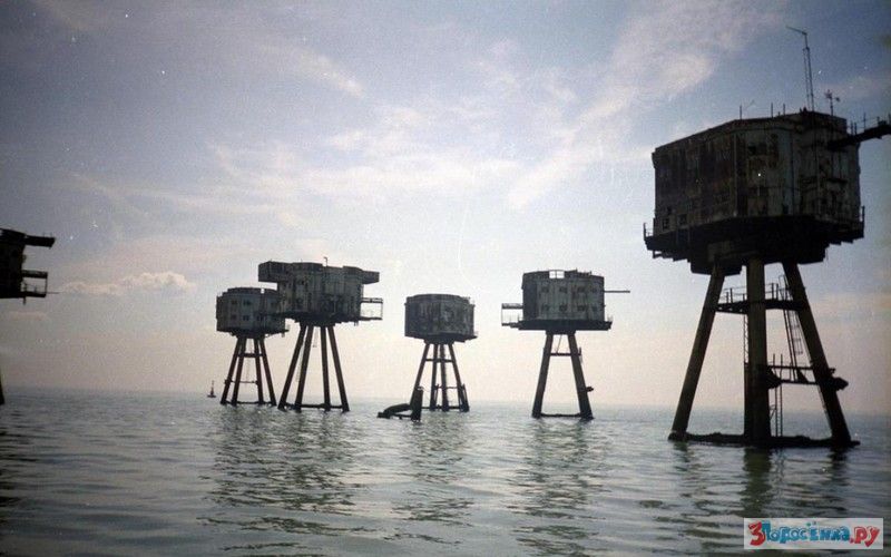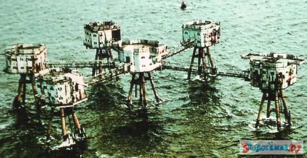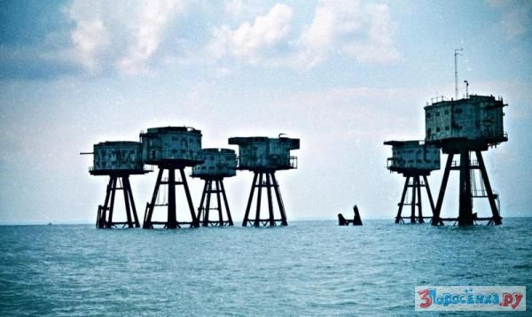Это фотография морской крепости, расположенной в устье Темзы у берегов Северного Кента. Несколько таких крепостей, вооруженных зенитными пушками, радиолокацией и прожекторами, были построены во времена Второй мировой войны (в 1942 году) по проекту британского инженера Ги Маунселла (Guy Maunsell) чтобы не дать немецкой авиации бомбить английские порты и минировать судоходные маршруты. Маунселл разработал два вида морских крепостей: NAVY Forts, которые предназначались для Королевского военно-морского флота, и Army Forts, предназначавшиеся, соответственно, для Британской армии.