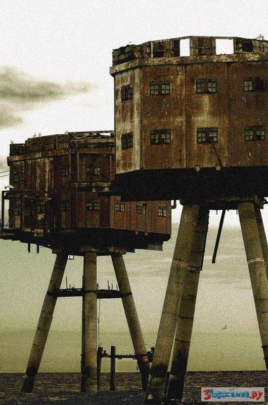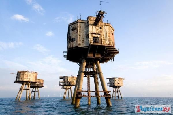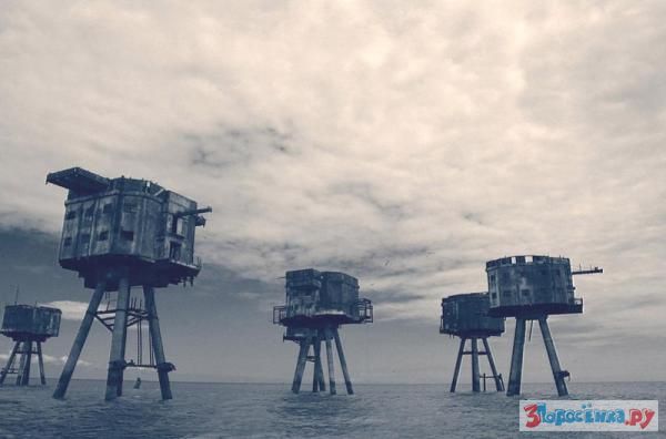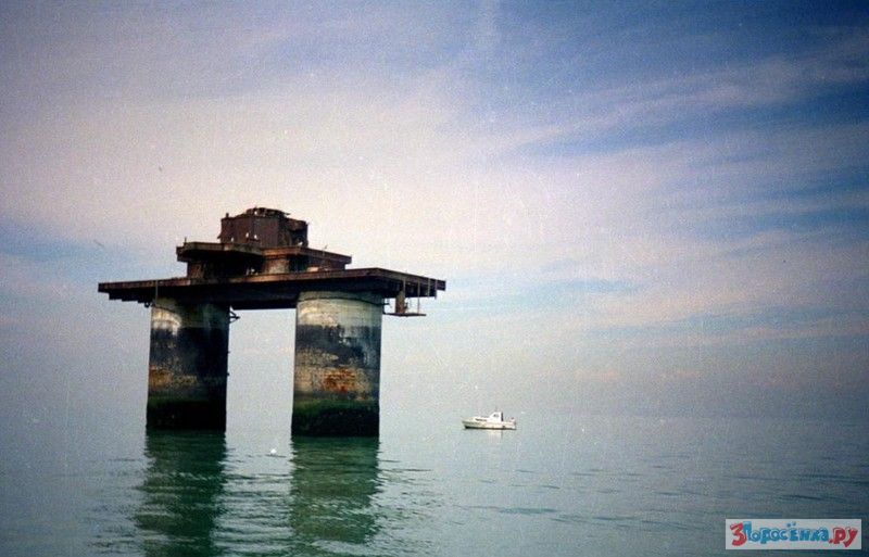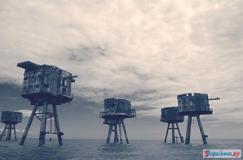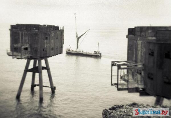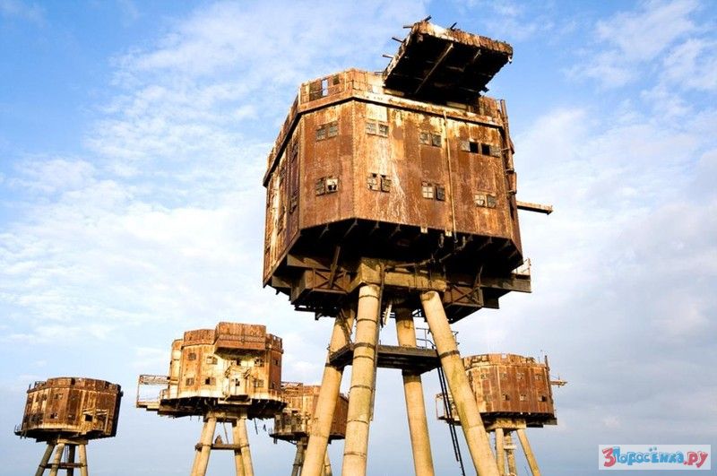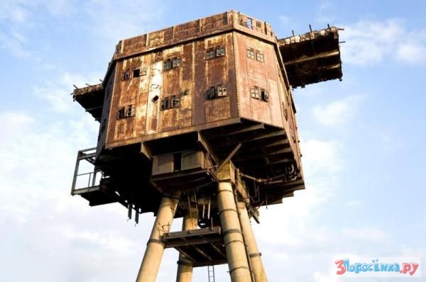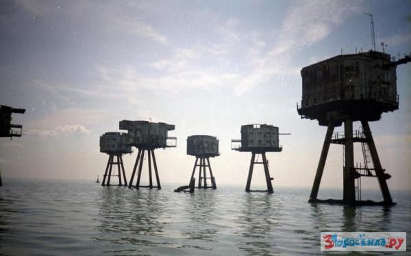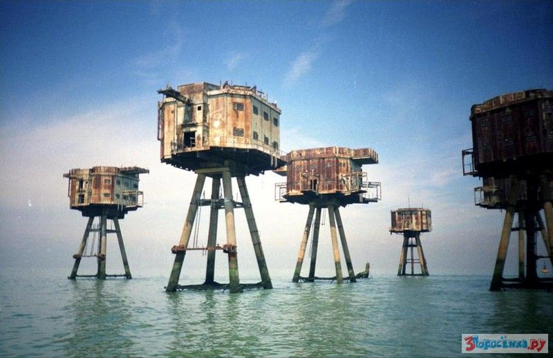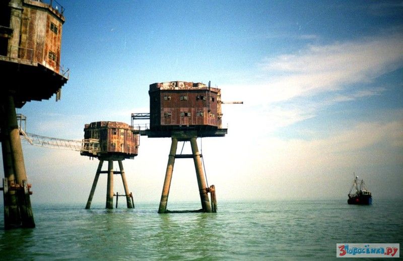 Это фотография морской крепости, расположенной в устье Темзы у берегов Северного Кента. Несколько таких крепостей, вооруженных зенитными пушками, радиолокацией и прожекторами, были построены во времена Второй мировой войны (в 1942 году) по проекту британского инженера Ги Маунселла (Guy Maunsell) чтобы не дать немецкой авиации бомбить английские порты и минировать судоходные маршруты. Маунселл разработал два вида морских крепостей: NAVY Forts, которые предназначались для Королевского военно-морского флота, и Army Forts, предназначавшиеся, соответственно, для Британской армии.