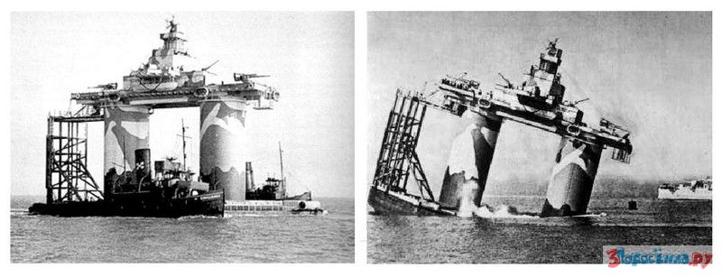 Морские крепости закладывались в сухом доке и там же полностью собирались. После чего крепости буксировались по воде до их боевых позиций, где они полузатапливались и прочно вставали на дно.