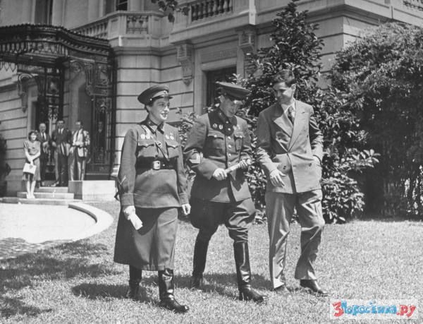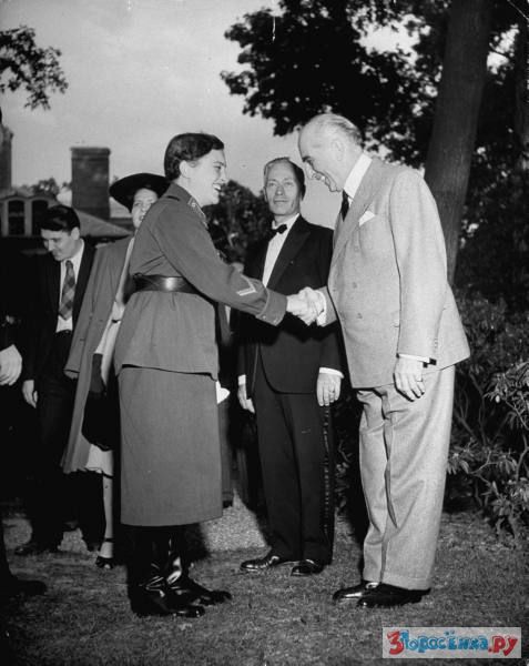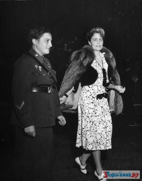 Людмила Павличенко и жена И. Майского (Агния Александровна) на приеме в советском посольстве в Великобритании по случаю 25-летия Октябрьской революции - 1942 г.