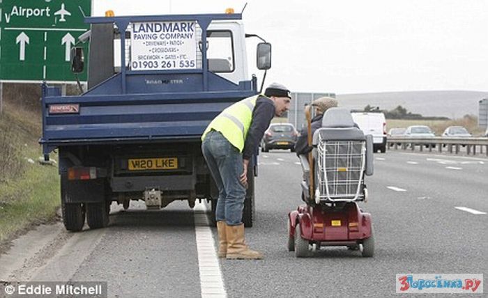 Дедушка перепутал повороты и выехал на скоростной автобан. Хорошо что его сразу догнала полиция.