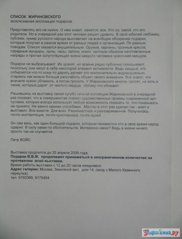 Выставка, посвященная юбилею Жириновского.