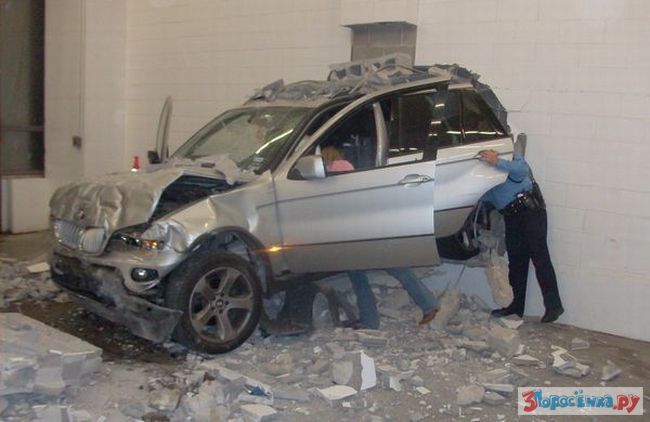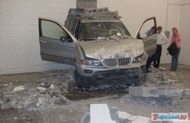 если на фотографии в машину на место водителя лезет баба, это ещё ни о чем не говорит:sm0013:а если говорть по теме, то машина не сильно пострадала...хотя влетела, видать не на маленькой скорости...главное чтоб водитель был жив...