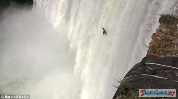Педро Оливия, 26-летний спортсмен прыгнул с водопада Salto Belo, что в Бразилии. Скорость падения 70 миль в час, продолжительность почти 3 секунды, а высота 177 футов.