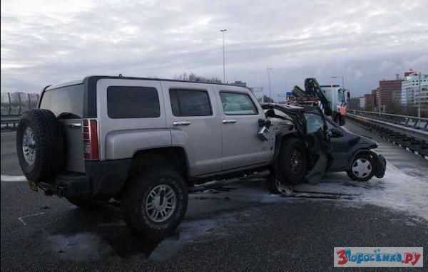 всегда хотел узнать что будет если хаммер въедет в легковушку...