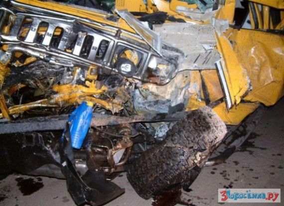 Я был на аварии где желтый Хаммер столкнулся с Камазом. Вообще жесть. В Хаммере 2 трупа, только девочка маленькая уцелела.