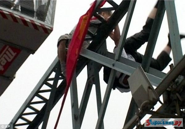 Из-за самоубийцы встало движение.И ему помогли спрыгнуть