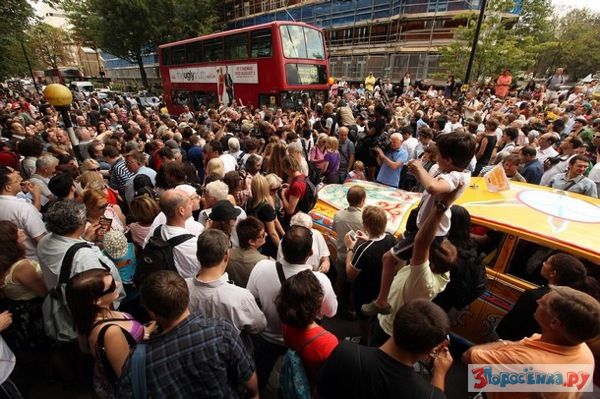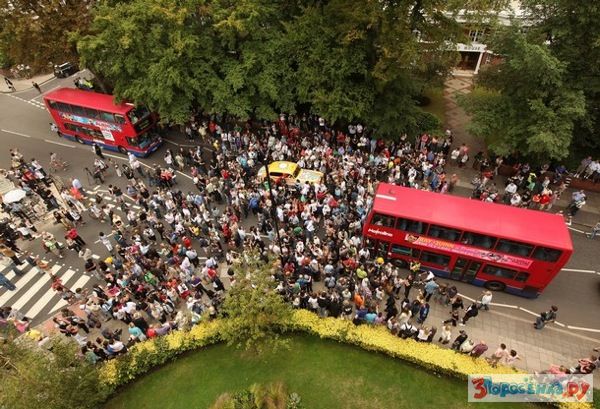 Многочисленные поклонники группы Beatles со всего мира в костюмах, как у их кумиров 40 лет назад, приехали в Лондон специально, чтобы пересечь самую известную "зебру" в мире. В связи со столпотворением, вызванным нашествием туристов, британские власти пришли к решению перенести пешеходный переход.