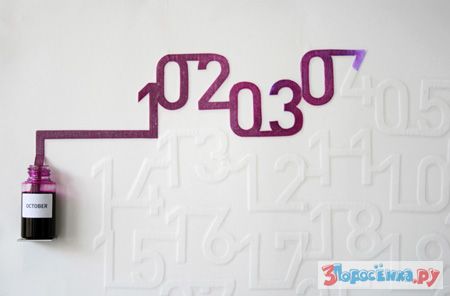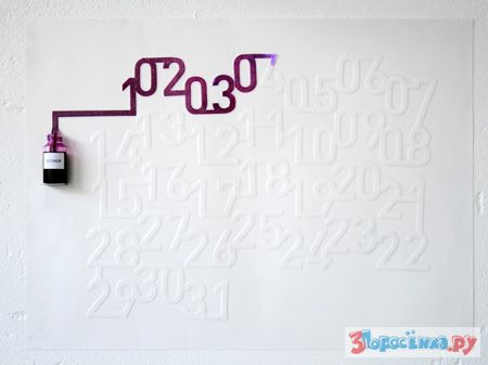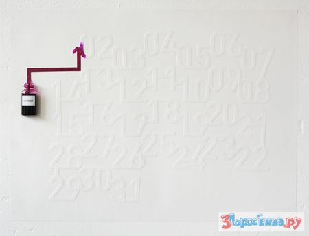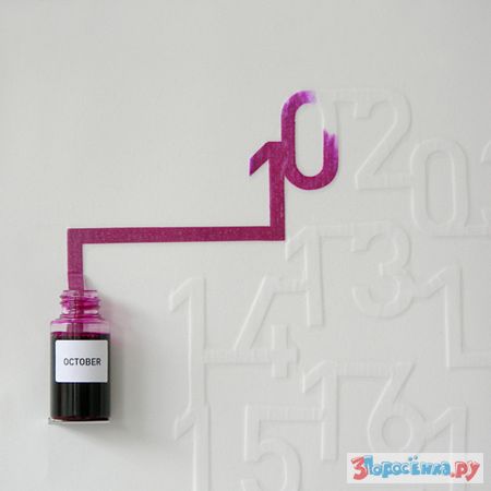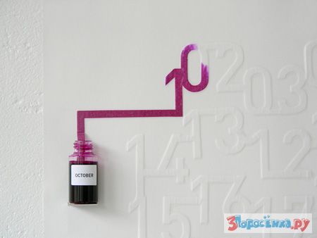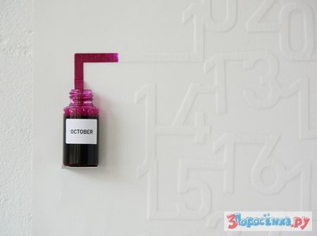 Испанский дизайнер Оскар Диаз (Oscar Diaz) придумал и сделал удивительный календарь Ink Calendar - для отображения даты в нем используются капиллярные свойства бумаги и цветная тушь. Каждый месяц тушь из бутылочки постепенно проникает сквозь рельефный лист бумаги, на который нанесены числа месяца, окрашивая их в определенный цвет. Каждому месяцу свой - на зиму оттенки синего, на весну - зеленого, на лето - красного...