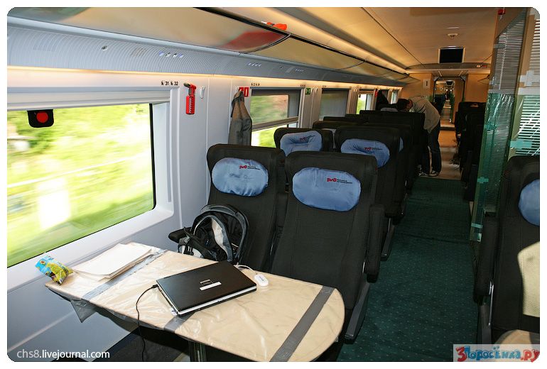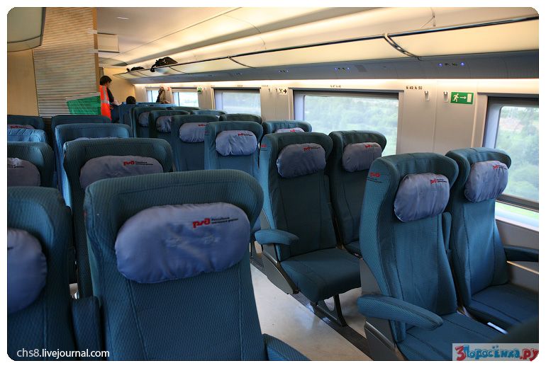 Пассажирам предлагается уровень комфорта, сопоставимый с самолетным - удобные сиденья, отличная звукоизоляция и великолепная плавность хода. Вагоны имеют двухклассную компоновку: головные - бизнес класс, промежуточные - туристический класс. Отличий по минимуму: в бизнес-классе черная обивка сидений, увеличенное расстояние для ног и есть розетка между сиденьями для использования ноутбука или подзарядки мобильного телефона.