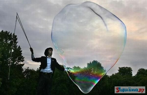 Этому англичанину по имени Sam Heath 37 лет. И вот уже на протяжении двадцати лет он занимается тем, что надувает мыльные пузыри.