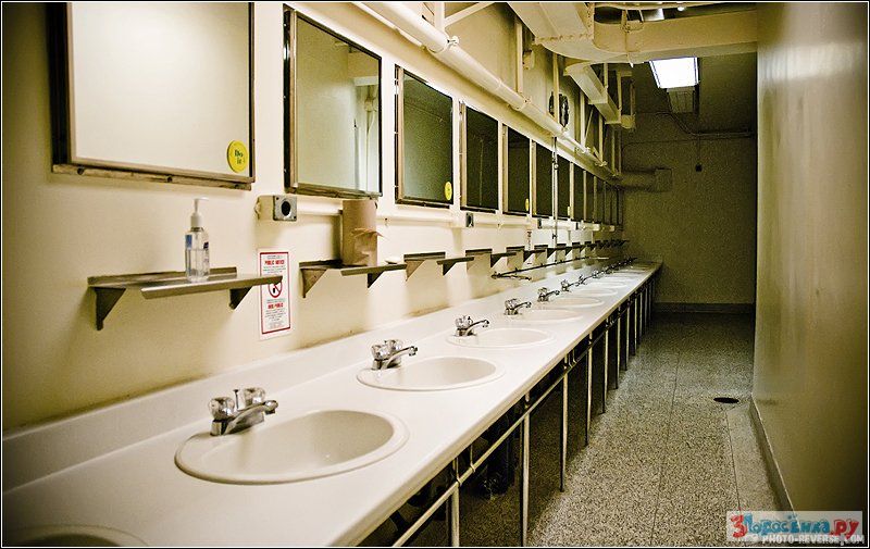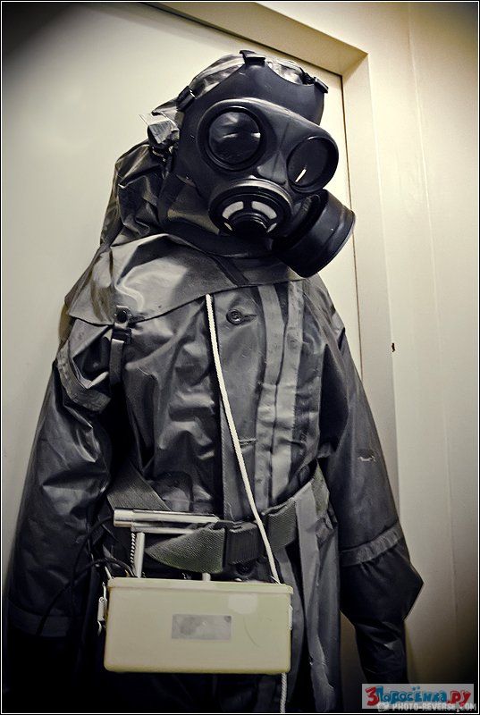 Прежде чем попасть в бункер необходимо преодолеть одну гермодверь, потом прямо в одежде принять душ, дальше снять одежду, выкинуть её в специальный контейнер, опять принять душ. После всех этих процедур специальный человек в химзащите должен измерить счетчиком Гейгера радиоактивный фон, и если всё в порядке, пропустить внутрь.