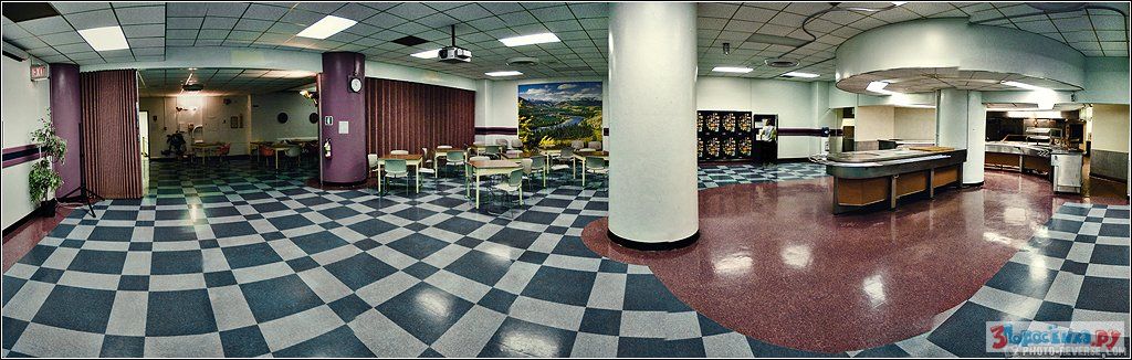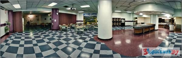 На третьем уровне находится столовая и продовольственная зона.