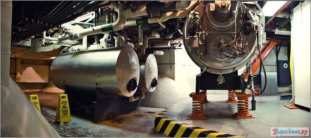 Там находится всё для жизнеобеспечения. Внизу стоят резервуары для воды, дизель, воздушные фильтры.