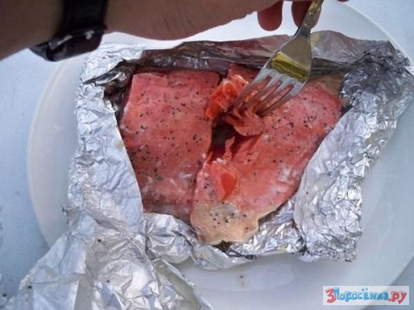 Записывайте рецепт: бирёте красную рыбу, овощи, приправу по вкусу и всё это заворачиваете в фольгу, включаете машину и ждёте. Приятного аппетита. Вот только вопрос, вкусно ли это? Ну просто возьмите на заметку, что и такой способ приготовления существует. Вдруг плита поломается или ещё что...