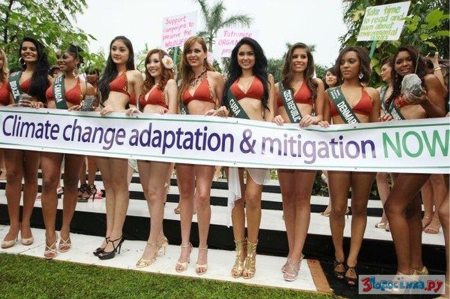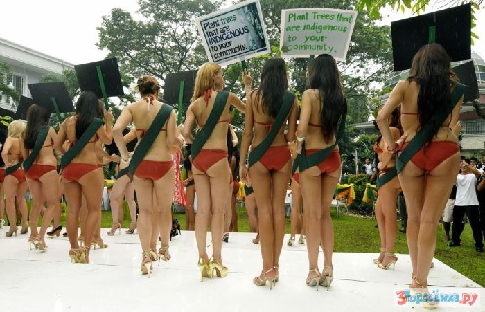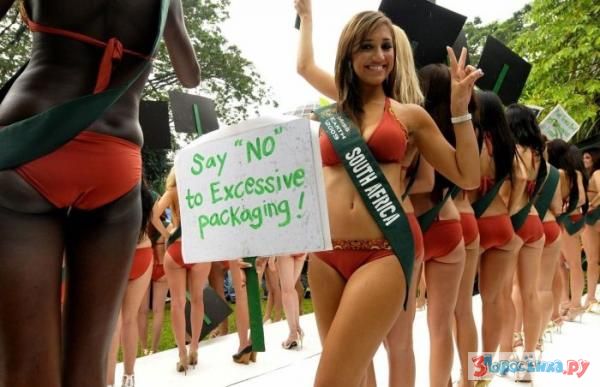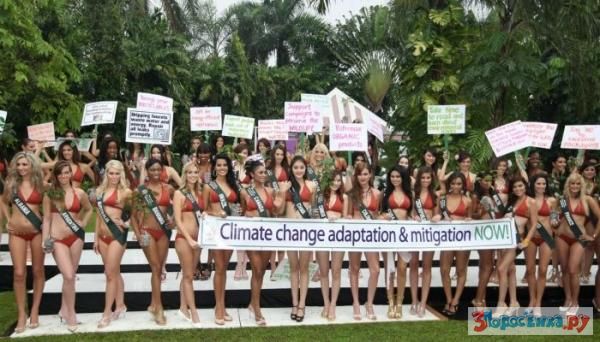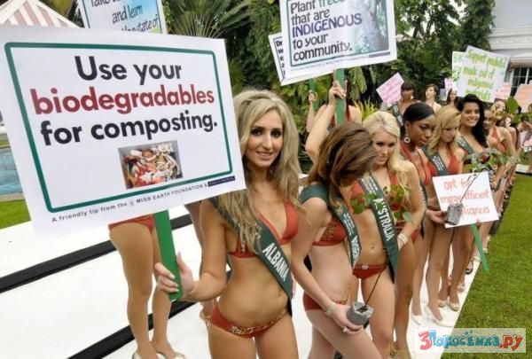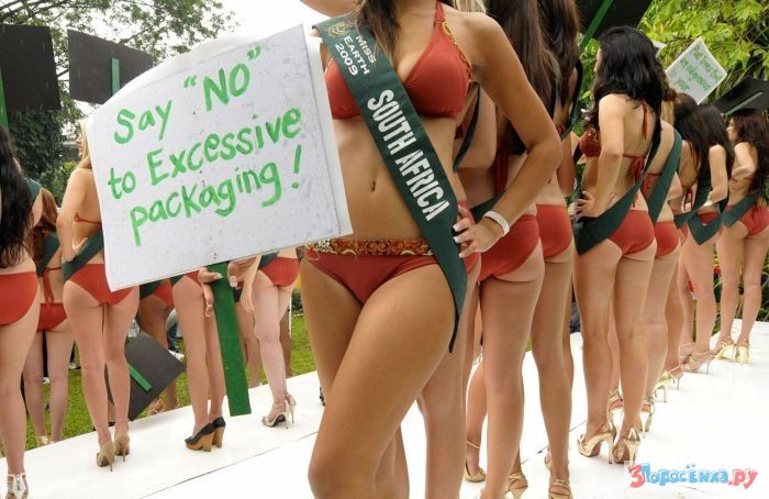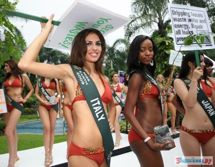 Участницы конкурса "Мисс Земля" вышли в бикини с защитой к окружающей среде.