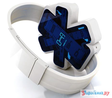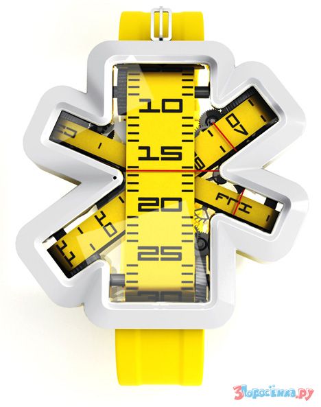 На валики концепта накручены три ленты. Первая показывает минуты, вторая - часы, третья - дни. Как работает приводной механизм, Стасинопулос, к сожалению, не нарисовал. Приходится ограничиваться констатацией того, что выглядят часики по меньшей мере необычно.