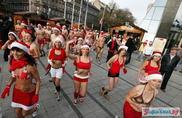 Устраивать благотворительные забеги раздетых Санта-Клаусов начали в Бостоне. Затем эту инициативу переняли и другие американские города, а позднее она распространилась по всему миру.