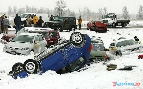 это наверное Москва...они уже не знают что такое снег и зимняя резина, поэтому любые 3 снежинки - катастрофа...