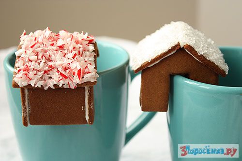 Самое время приготовиться к рождественским и новогодним праздникам и посмотреть, что предлагают сотворить своими руками различные кулинарные блоги. Вот, например, домик из печенья, посыпанный кокосовой стружкой. Предназначается специально для того, чтобы надевать его в качестве украшения на чашку с горячим шоколадом (по аналогии с коктейлем)