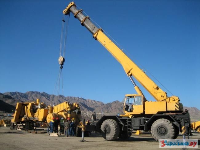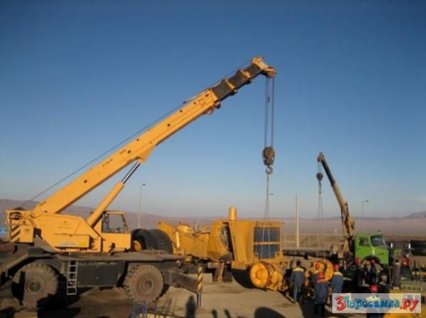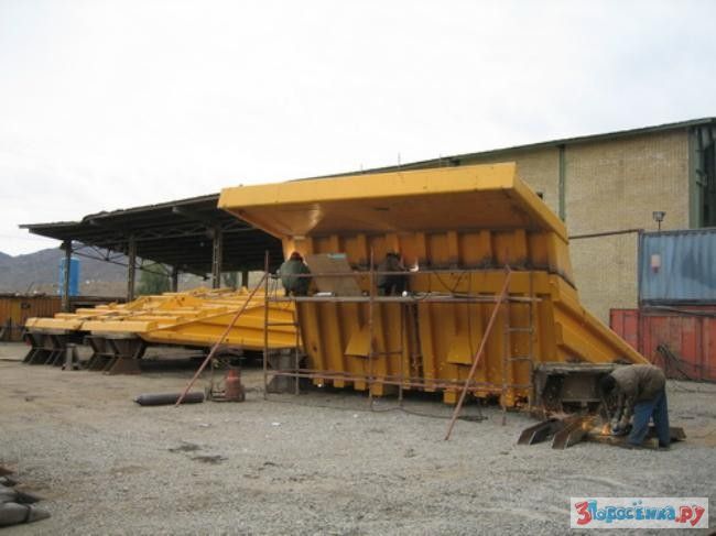 Далее монтируется гидравлика и собирается грузовая платформа (она приходит в разрезанном виде и на месте сборки ее сваривают), которая устанавливается при помощи двух подъемных кранов.