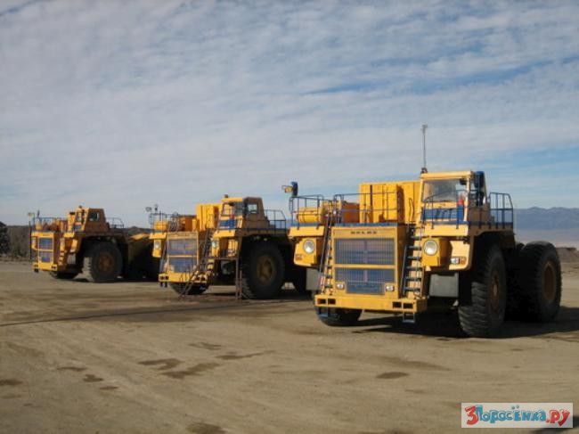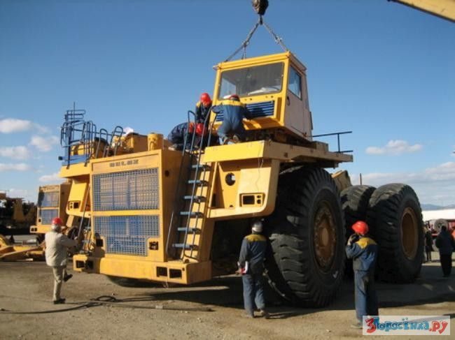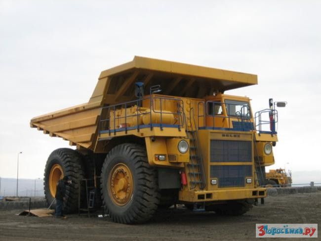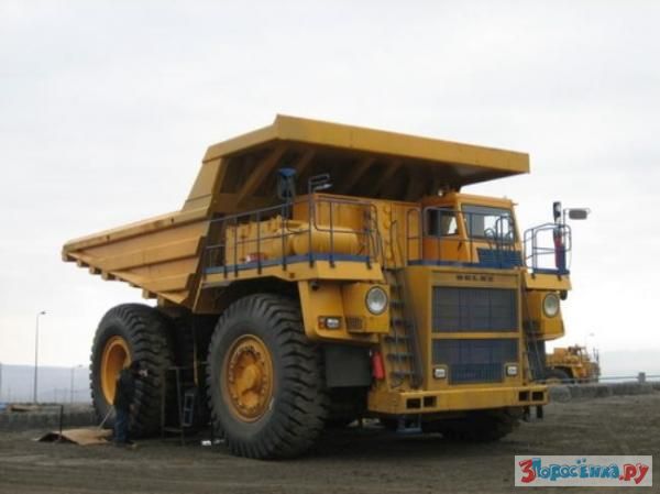 Огромные карьерные самосвалы БелАЗ производят на заводе в Жодино, в 60 км от Минска. Там машину собирают, проверяют и снова разбирают для доставки покупателю в карьер. В разобранном виде 130-тонная машина занимает три железнодорожные платформы.