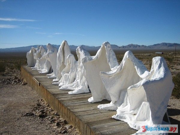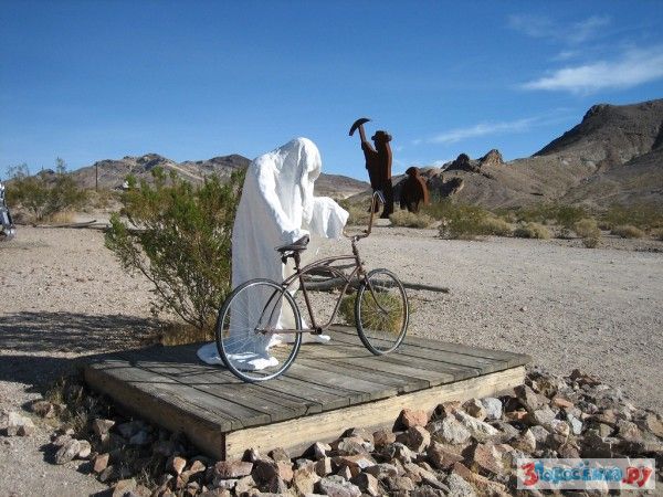 Заброшенный город, город-призрак Rhyolite находится в 120 милях от Лас-Вегаса, недалеко от восточного края Долины Смерти. Но речь не о нем. А о непонятных и странных произведениях искусства, расзбросанных в этом городе неизвестными художниками. Ночью наткнешься - обделаешься...