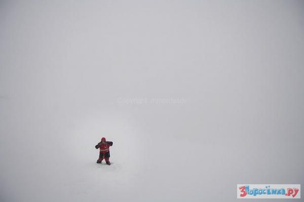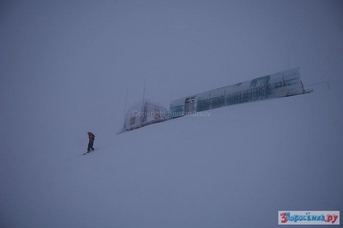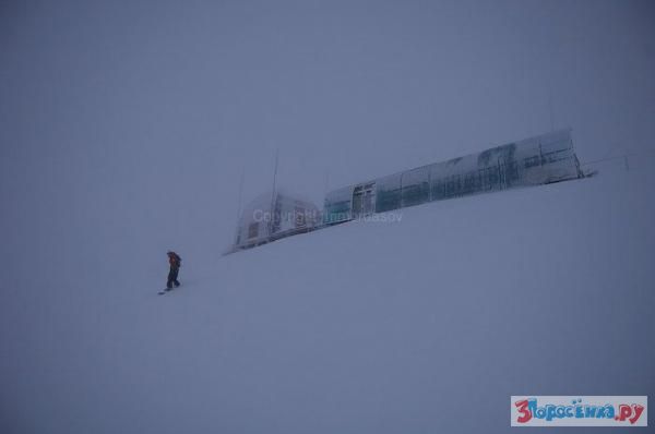 Работа единственной на территории Сочи и Красной Поляны труднодоступной метеостанции "Аибга" на хребте Аибга на высоте 2225 метров над уровнем моря. Сотрудник метеостанции Алексей прыгает с перил в снег, чтобы потом подойти к приборам и произвести измерения высоты и плотность снежного покрова.