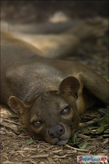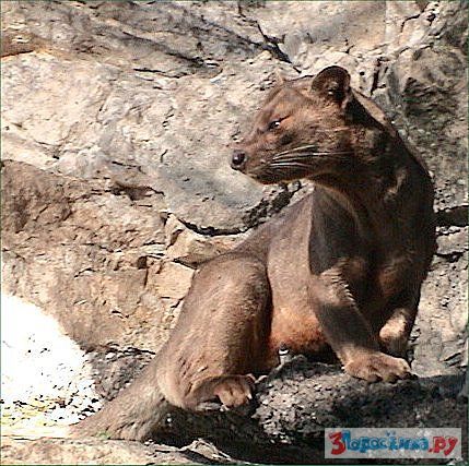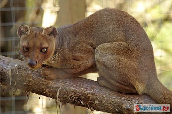"Фо́сса (Cryptoprocta ferox) - хищное млекопитающее семейства мадагаскарских хищников. Является единственным представителем рода Cryptoprocta и выделена в отдельное подсемейство Cryptoproctinae. Фосса - самый крупный млекопитающий хищник острова Мадагаскар (самое крупное плотоядное на Мадагаскаре - Crocodylus niloticus) и одна из самых крупных виверр. Её доисторические предки достигали размеров льва.