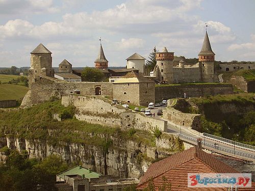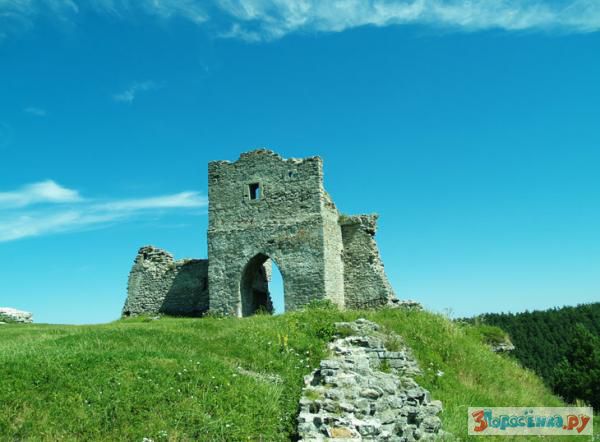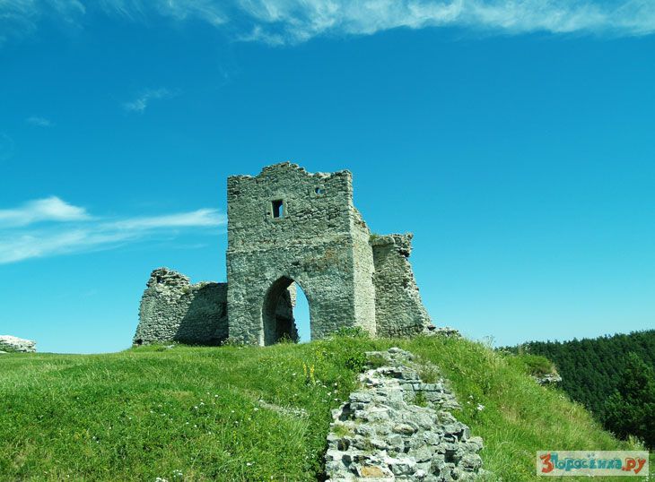 Серые остатки башен трезубцем отражаются в Збручский воде, короной венчают высокую гору Стрелке. Крепость построили в 1615 году магнаты Гербурт, и замок особым героем себя не показал: то казаки Максима Кривоноса вместе с восставшими жителями села выгоняют польский гарнизон летом 1648 года, то турки захватят крепость в 1672 и 1694 годах.