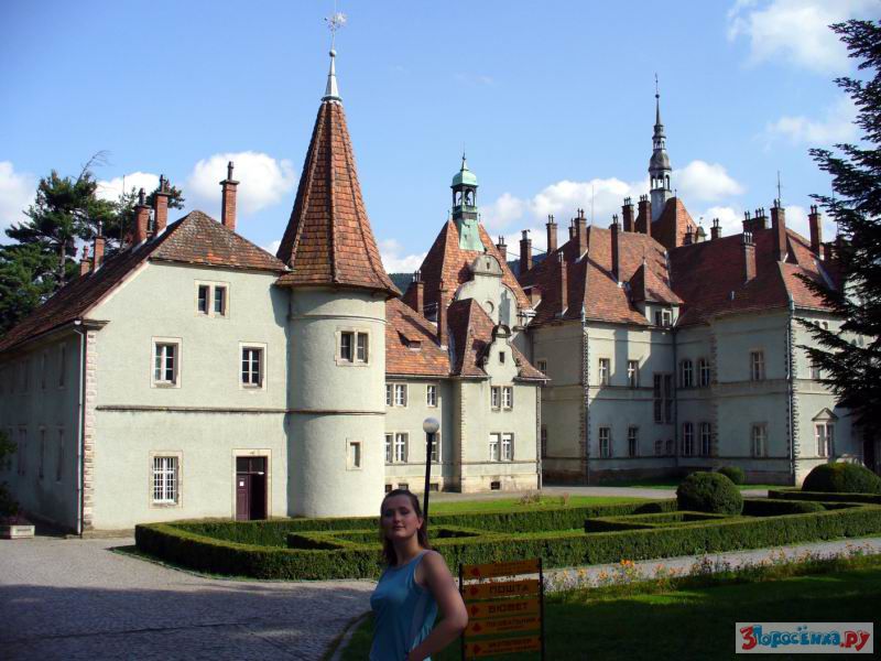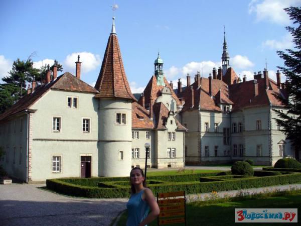 Даже железнодорожная станция здесь похожа на миниатюрный замок, а в роскошном парке прячется настоящее сказочное чудо. Сначала из-за крон деревьев появляется высокая башня, украшенная часами и семейными гербами.