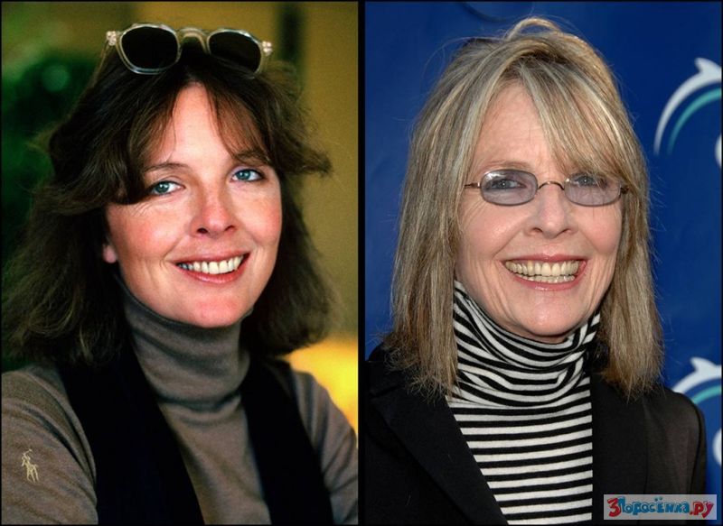 Дайан Китон выглядит нормальной 64-летней женщиной. Ее веки оседают, шея дряхлеет, а волосы седеют. Я бы не сказал, что она выглядит молодо для своего возраста, но она остается привлекательной женщиной. Сомневаюсь, что она вообще делала операции. По крайней мере, она выглядит куда лучше своего коллеги по фильму "Энни Холл" Вуди Аллена.