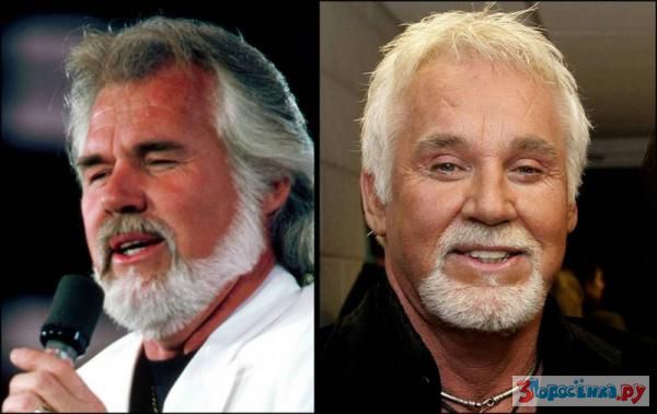 Кенни Роджерс признался, что не побрезговал подтяжкой век, и зря. Его пластический хирург, видимо, убрал слишком много кожи с верхних век, так что теперь он выглядит постоянно удивленным. Скорее всего, продолжая свою работу над глазами, он сделал также подтяжку бровей. Он представляет собой яркий пример того, что с мужчинами пластическая хирургия должна быть очень консервативной. К сожалению, он больше не похож на легенду кантри, которой он был раньше.