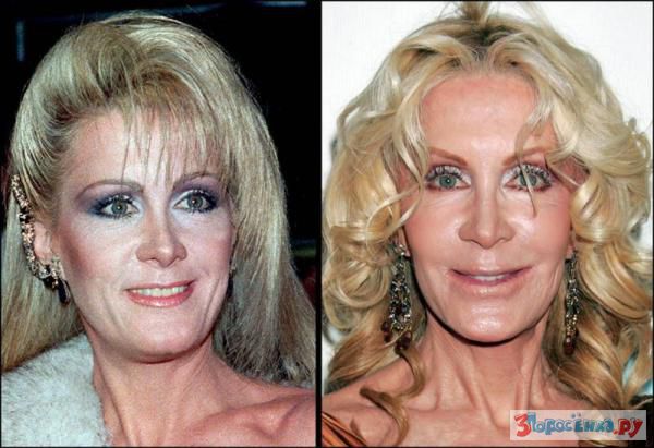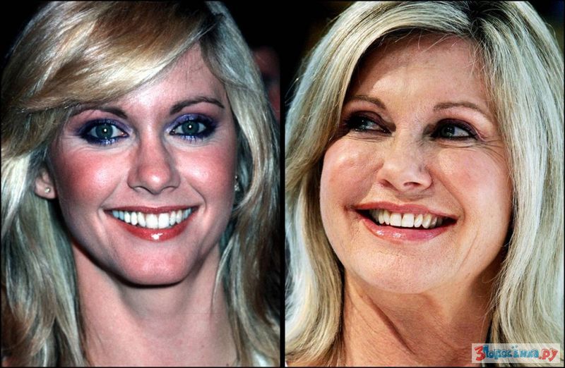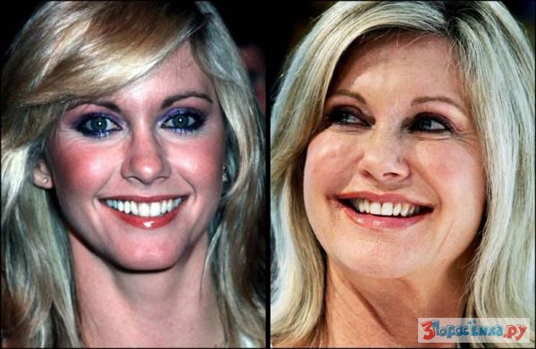 Похоже, красотка 80-ых Оливия Ньютон-Джон безнадежно пристрастилась к косметическим инъекциям. Ее лицо выглядит неестественно раздувшимся, возможно, из-за пересадки жира или инъекций Sculptra. Губы также кажутся увеличенными, скорее всего, из-за таких наполнителей, как Restylane или Juvederm. Лоб очень гладкий, даже слишком для женщины в 61 год