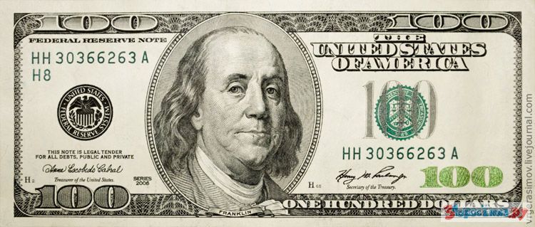 Немного истории доллара: В начале XVI века в горах северо-западной Богемии начала действовать шахта по добыче серебра. В долине рядом с шахтой был основан город Санкт-Иоахимсталь (по названию долины, таль -- по-немецки "долина"). Начиная с 1519 года тут начали чеканить серебрянную монету с изображением святого Иоахима для Римской империи. Монета получила название "иоахимсталер". Со временем её стали называть талером. Талер получил широкое хождение в Европе. В Швеции "далеры" чеканили с 1534 года, в Дании - с 1544-го. В Англии его называли даллером, затем далларом и, наконец, долларом. Во времена господства Испании на море, одной из самых твердых валют мира были испанские серебряные реалы и золотые дублоны. Их также называли долларами (в Португалии - даларами). В Банке Англии хранилось такое огромное их количество, захваченное как военные трофеи или полученное в качестве оплаты долгов, что английский король Георг III приказал использовать испанские реалы в обращении. Каждый реал стоил 1/8 английского фунта его называли piece of eight(одна восьмая, осьмушка), что со временем превратилось в "песо" (peso). Песо попали в североамериканские колонии, где, как и другие крупные серебряные монеты, также стали называться долларами. С ними же связано и появление знаменитого знака $. Длинное английское piece of eight на бумаге превратилось в перечеркнутую восьмерку, которая в итоге и стала $. Базовый дизайн большинства долларовых банкнот был утвержден в 1928 году. На лицевой стороне долларов изображены портреты ... нет-нет, не только президентов, но и других государственных деятелей США. Кроме президентов на 2х купюрах изображены портреты отцов основателей: первого министра финансов Александра Гамильтона на десяти долларах и учёного, публициста, дипломата Бенджамина Франклина на сотне: