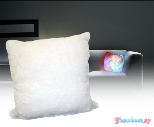Читать лежа любите? Если любите, то согласитесь, что торшер - не самый удобный источник освещения для вечернего чтения. А вот с 3 мая можно будет заказать светодиодную подушку из плюша. Подушка довольно ярко светит, работает от трех батареек типа АА, весит 350 граммов и выключается похлопыванием. Предусмотрено несколько вариантов освещения, в том числе и переливающийся