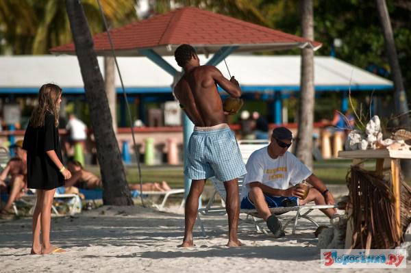Негры, продающие сувениры на пляже отеля Jolly Beach Resort, развлекают себя изготовлением коктейлей из кокосов, растущих на пальмах у них над головами. Быстро-быстро забираются на пальму, скидывают оттуда штук десять плодов, с помощью мачете отсекают у кокоса верхнюю часть, кидают туда лёд, добавляют рома из большой бутыли и предлагают всем желающим. Так как пахнет от ребят традиционным на Антигуа дымком от травки и смеются они совершенно беспричинно, коктейль раздаётся бесплатно, от широты душевной. Всем хорошо, всем весело. Просто рай на земле!
