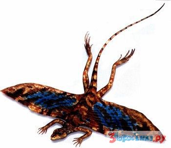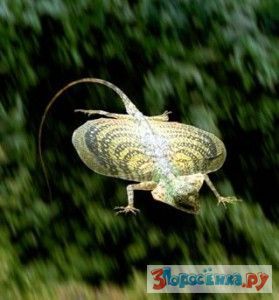 В тропических лесах Юго-Восточной Азии - в Малайзии, Индонезии, Южной Индии, на Филиппинах, Суматре и Борнео - обитают небольшие, размером в 20-40 см, ящерицы с "крылышками". Эта разновидность пресмыкающихся, так и называющаяся "летучий дракон" (по-латински Draco volans), действительно может летать на расстояние до 60 метров. Чтобы перепрыгнуть с ветки на ветку, эти ящерицы, которых существует 15-16 видов, расправляют широкие кожаные складки по бокам туловища, поддерживаемые длинными ложными ребрами, и, как на крыльях, парят до соседнего дерева.