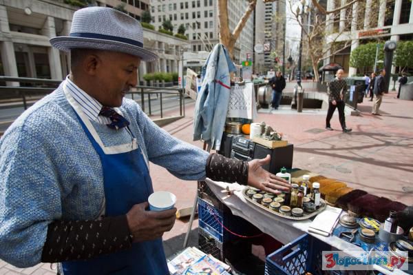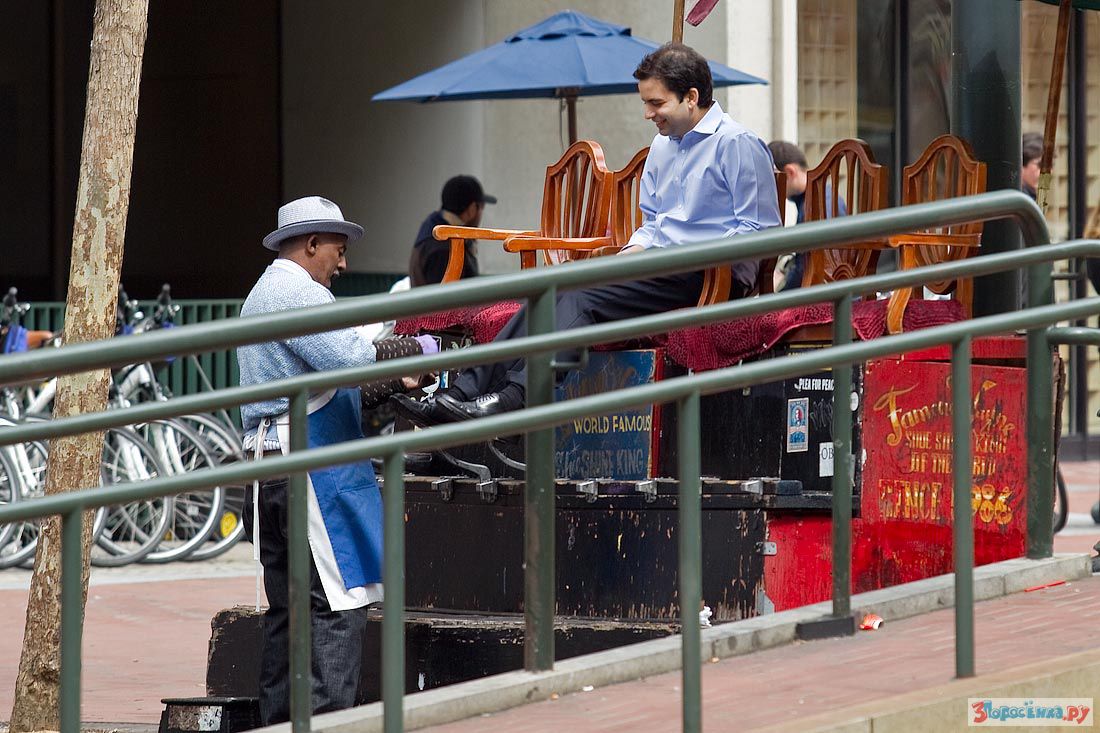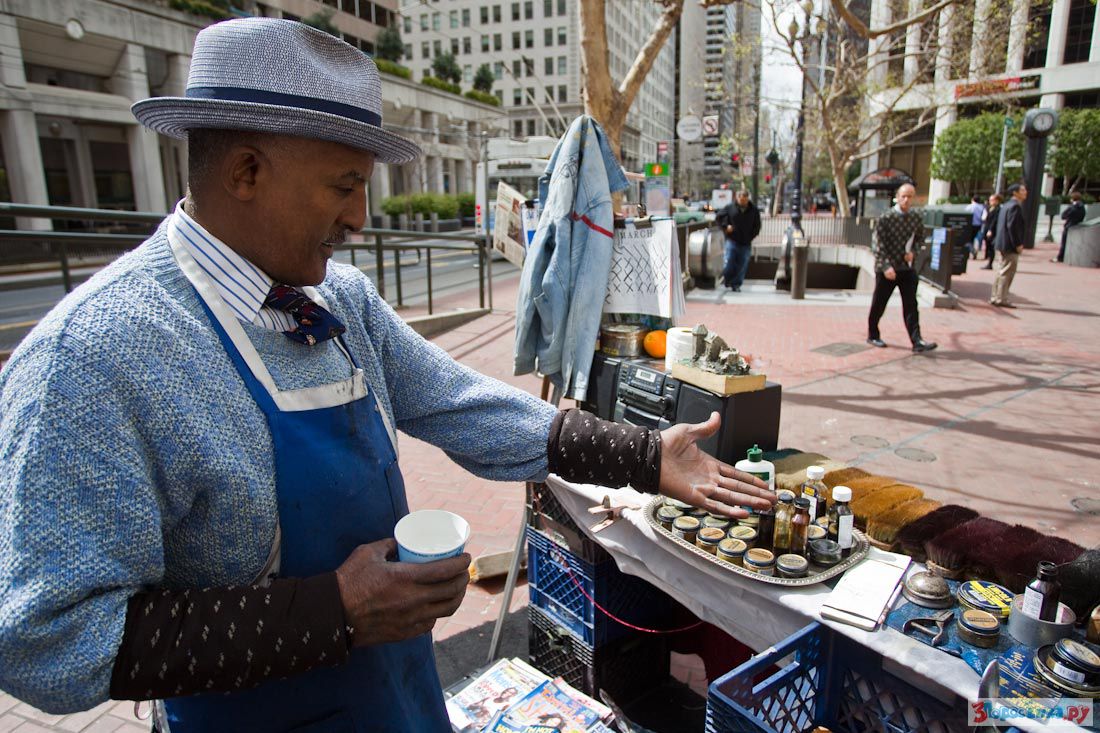 Там, где Калифорния-стрит с линией трамвайчиков "cable car" выходит на Маркет-стрит, обитает еще одна местная достопримечательность - мистер Кенни Уэйн Боуэн (Kenny Wayne Bowen). Мистер Боуэн - чистильщик обуви. Лучший, как он сам утвеждает, в мире. Там, где заканчивается линия "cable car", стоит помост на пять посадочных мест, стол с щетками и ваксой и сам мистер Кенни Уэйн Боуэн.