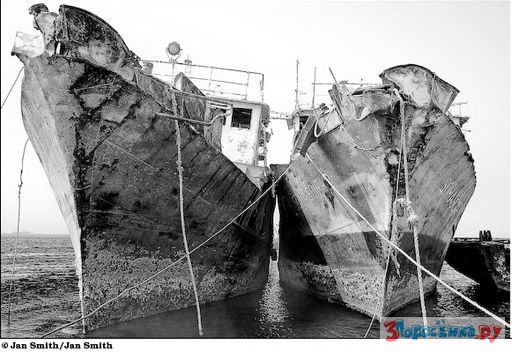 "Нуадибу означает место где отъедаются шакалы, а еще это означает кладбище кораблей." - так пишет в своем портфолио Ян Смит, который снял захватывающие фотографии брошеных кораблей в заливе Нуадибу в Мавритании. Возможно этот залив является самым большим кладбищем кораблей в мире. Когда Ян отправился в Мавританию в 2008 он не испытывал недостатка в трудностях. Никто не верил, что он приехал, чтобы запечатлеть корабли на пленку. Смит был арестован морокканскими военнослужащими, обвинен в шпионаже, но в конце концов все благополучно разрешилось и он все таки добрался до залива. Под катом несколько его работ с кладбища кораблей.